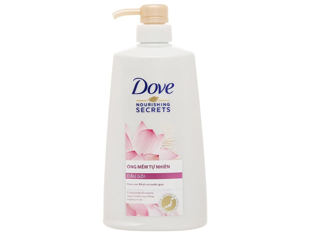 Dầu Gội Dove Óng Mềm Tự Nhiên 640g (621ml) thuộc dòng Nourishing Secret lấy cảm hứng từ bí quyết dưỡng tóc của các cô gái Nhật với hoa sen và nước gạo, tạo nên mái tóc óng mềm tự nhiên, hương thơm dễ chịu.