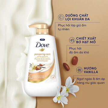 Sữa tắm dưỡng thể Dove chiết xuất bơ hạt mỡ hương vanilla chai 500g giúp làm sạch da, bổ sung dưỡng chất chăm sóc và phục hồi độ ẩm da khô. Sữa tắm dưỡng thể của Dove không chứa sulfate và parabens, không gây nhờn rít da.