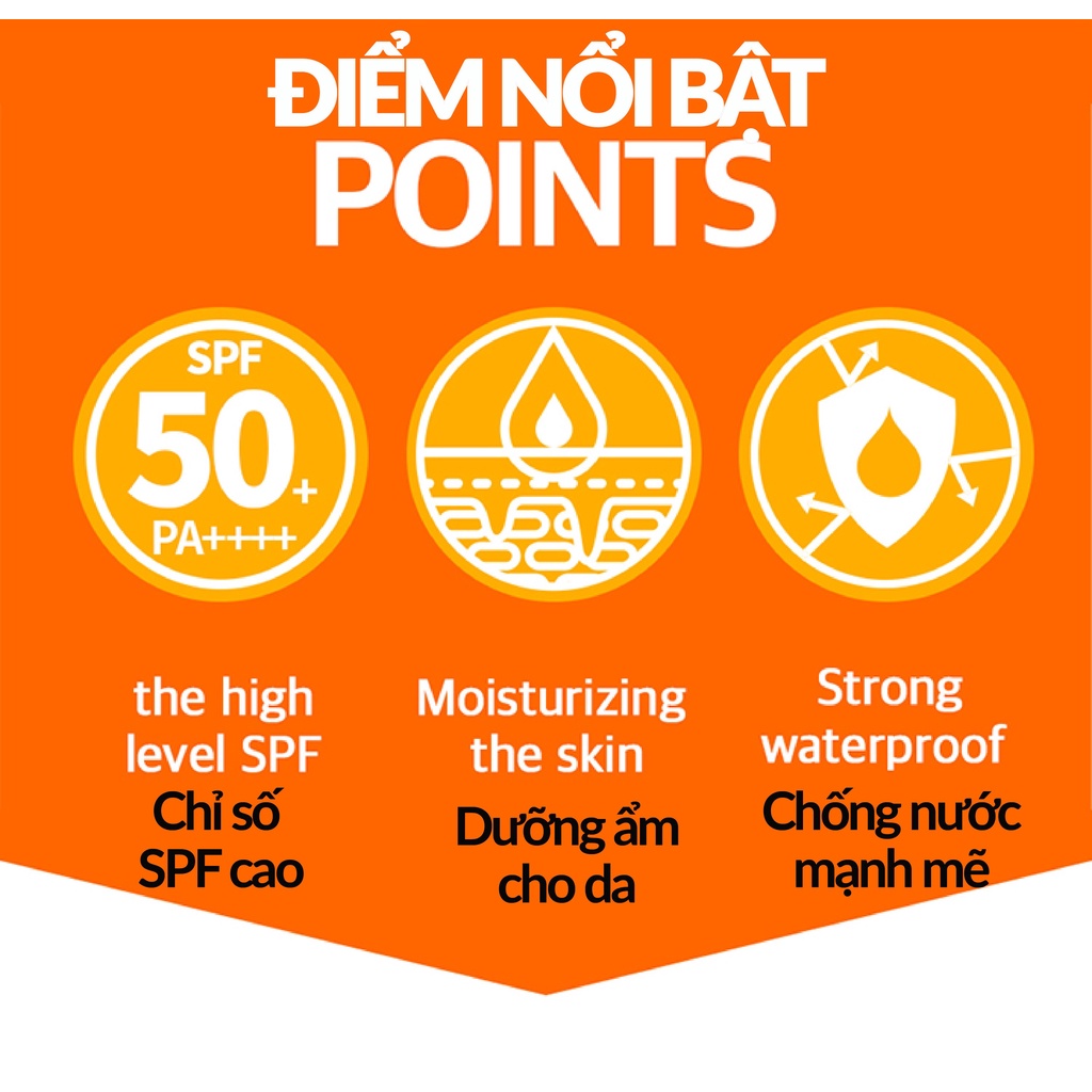 SPF50+/ PA++++: Mức chỉ số cao nhất tại Hàn Quốc, giúp ngăn chặn tia UVA và UVB toàn diện, bảo vệ da lên đến 12h.