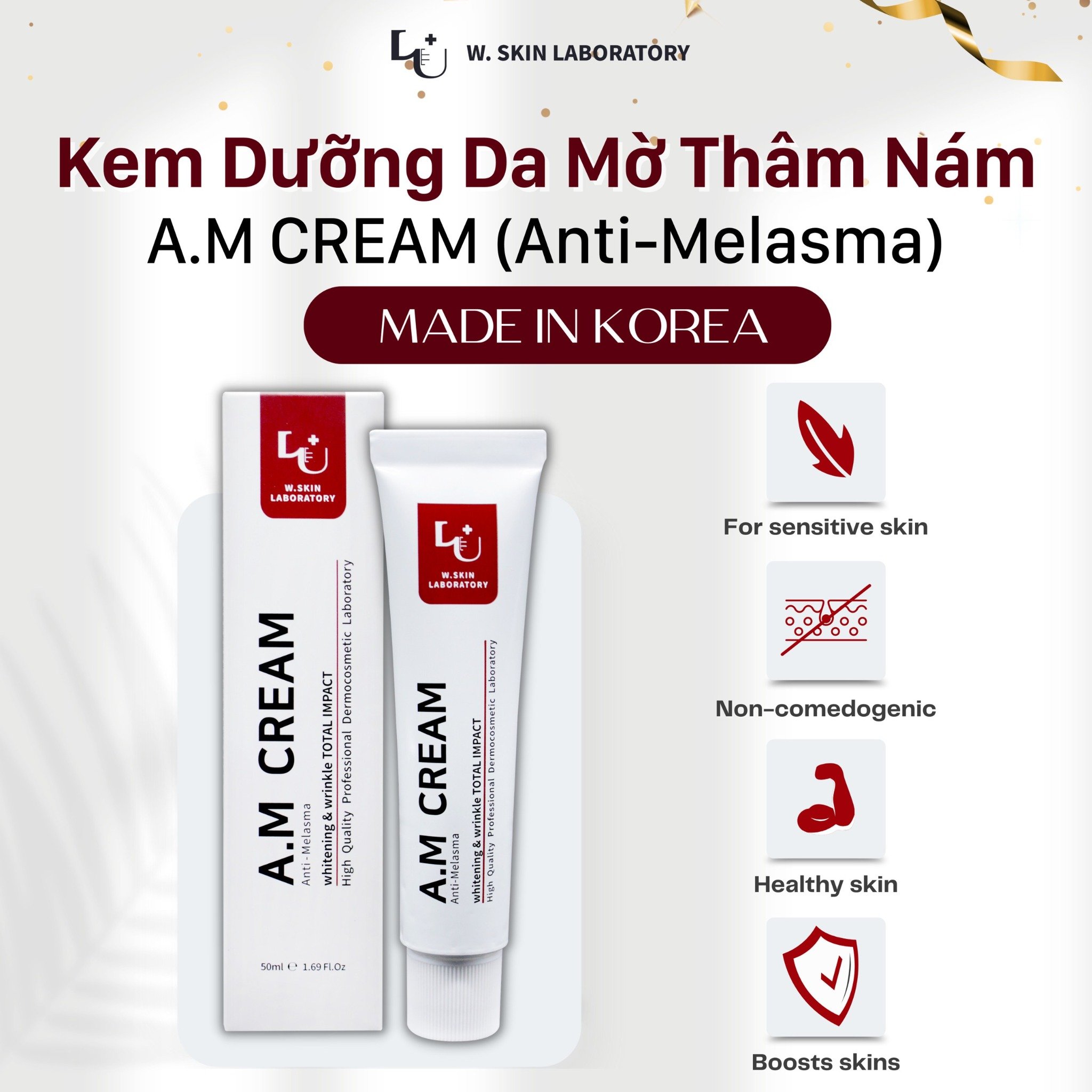 Kem dưỡng da W.SKIN LABORATORY A.M CREAM (Anti-Melasma) hiệu quả rõ rệt chỉ sau 4 Tuần
