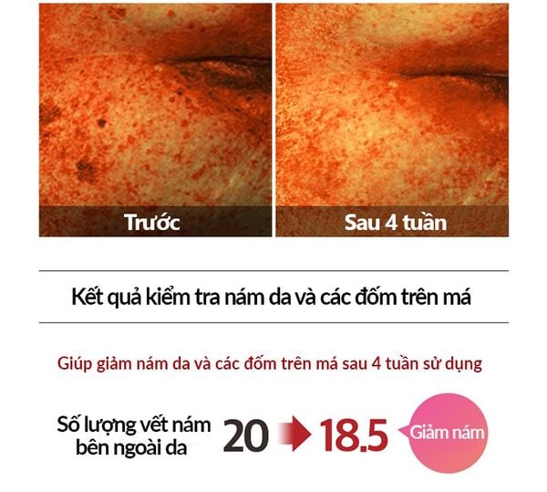 Hiệu quả trong việc làm trắng da, giúp làm mờ nám, sạm, tàn nhang, đồng thời cải thiện nếp nhăn và giảm quầng thâm mắt, trả lại làn da trắng sáng rạng rỡ.