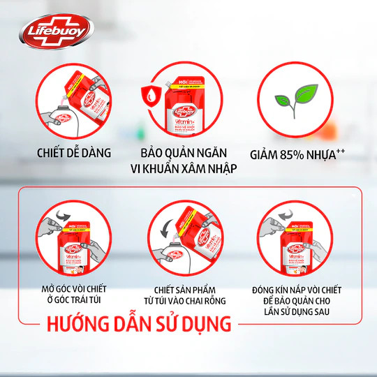 Nước rửa tay Lifebuoy Bảo vệ vượt trội 10 với Công thức Vitamin+ hoàn toàn mới giúp làm sạch da tay và bảo vệ khỏi 99,9% vi khuẩn, kể cả vi khuẩn biến đổi: