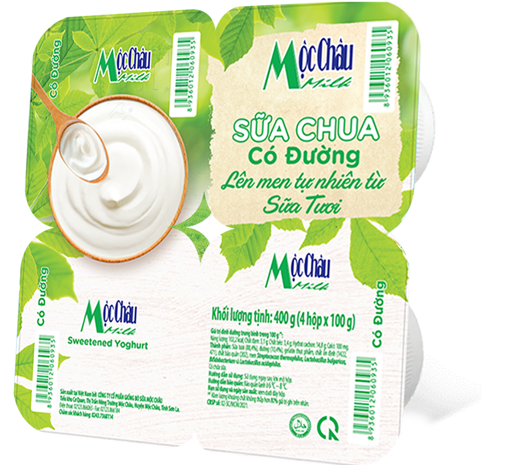 - Sản phẩm Sữa chua có đường Mộc Châu được làm từ nguồn sữa tươi sạch, lên men tự nhiên mang lại hương vị thơm ngon, béo ngậy.