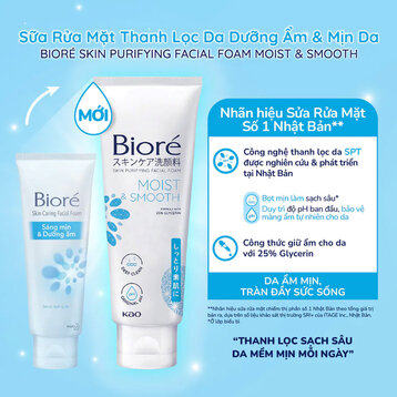 Sữa rửa mặt thanh lọc da – Dưỡng Ẩm & Mịn Da (mới) – Biore Skin Purifying Facial Foam Moist & Smooth là giải pháp cho làn da khô, thiếu nước với các tính năng ưu việt: