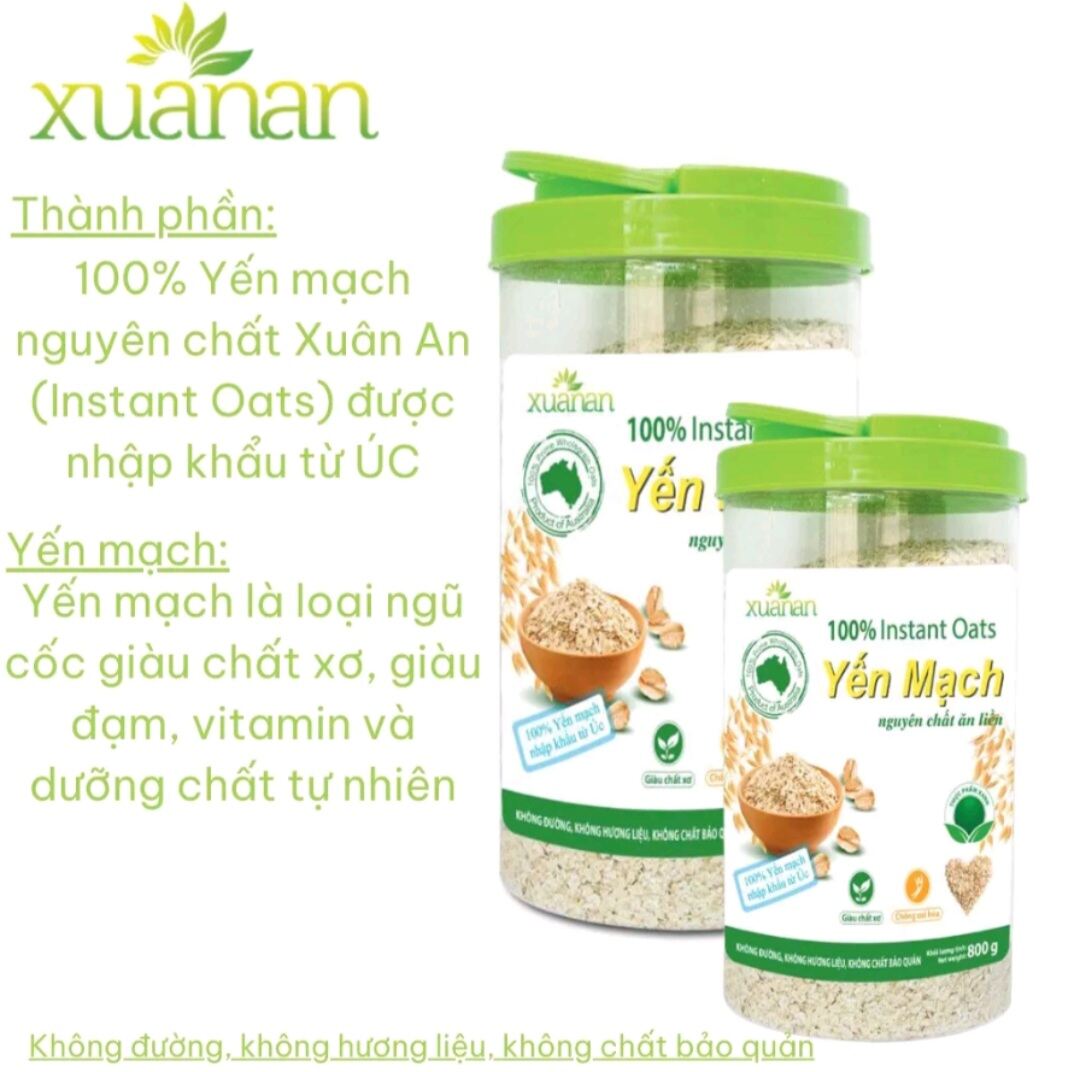 Yến mạch là loại ngũ cốc giàu chất xơ, giàu đạm, vitamin và dưỡng chất tự nhiên. 100% Yến mạch nguyên chất Xuân An (Instant Oats) được nhập khẩu từ ÚC.